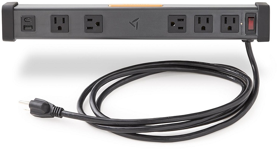 This bar includes a resettable 15 amp circuit breaker across five outlets, offering USB-A and USB-C utility outlets plus space for bulky and right angle chargers.