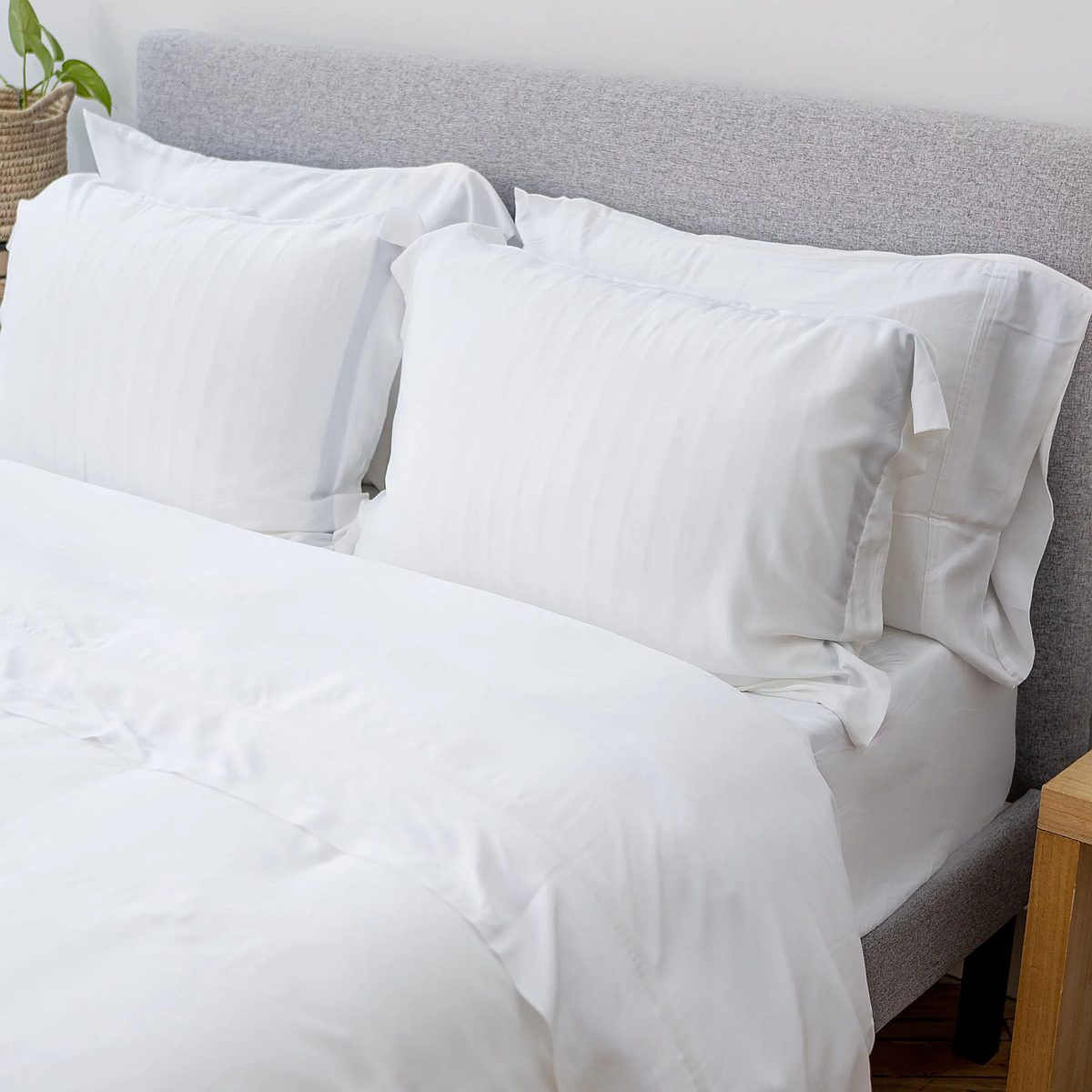 Made from 100% viscose bamboo in a sateen weave. This allows for our Iced cooling effect while the sateen makes it feel super soft. It will only get softer after each wash.