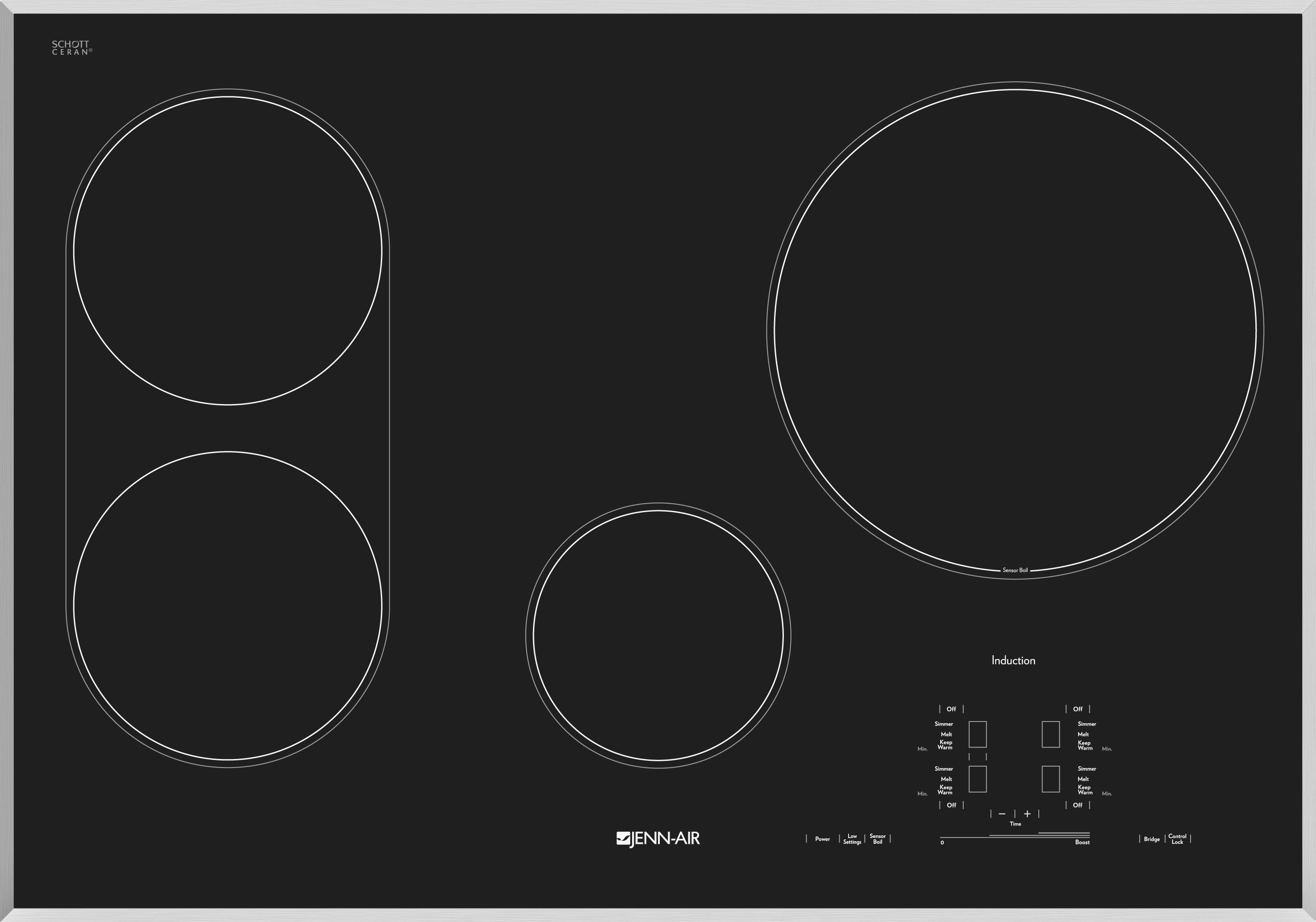 This Jenn-Air® luxury induction cooktop combines the precision of a gas cooktop with the sleek design of an electric cooktop. Four powerful elements heat cookware directly, for exceptional speed and responsiveness, while the cooking surface stays cool to the touch.Read More