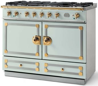 The original CornuFé range, this 43" range is your first La Cornue love. The CornuFé 110 features two electric convection ovens, one of which is a seven mode multifunction oven, five powerful gas burners, or a five zone induction rangetop constructed of durable ceramic glass that easily wipes clean and one large storage drawer.Read More