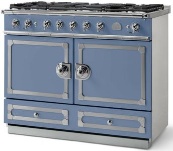 The original CornuFé range, this 43" range is your first La Cornue love. The CornuFé 110 features two electric convection ovens, one of which is a seven mode multifunction oven, five powerful gas burners, or a five zone induction rangetop constructed of durable ceramic glass that easily wipes clean and one large storage drawer.Read More