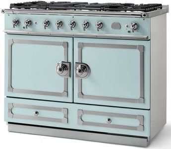 The original CornuFé range, this 43" range is your first La Cornue love. The CornuFé 110 features two electric convection ovens, one of which is a seven mode multifunction oven, five powerful gas burners, or a five zone induction rangetop constructed of durable ceramic glass that easily wipes clean and one large storage drawer.Read More