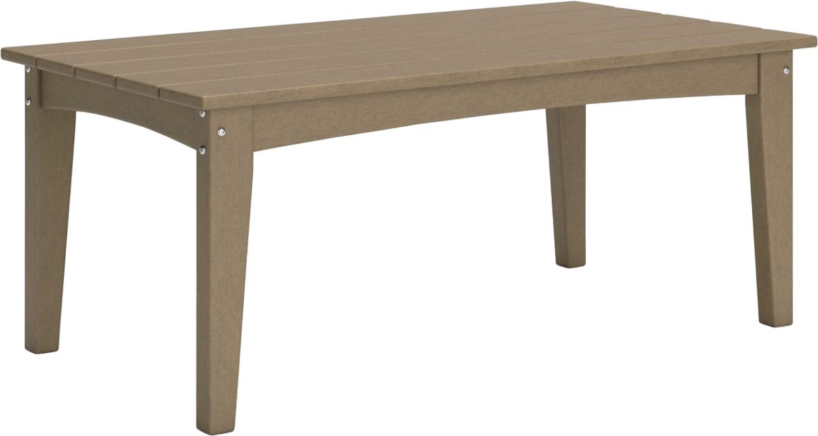 Drift into outdoor entertainment bliss with this coffee table. Dressed in an inviting driftwood hue with a classic feel, it weathers sunny summer days and cozy winter nights with durable MEGA-TUFF® HDPE material. When it comes to form and function, the table's rain-shedding slatted design simply goes with the flow.Read More