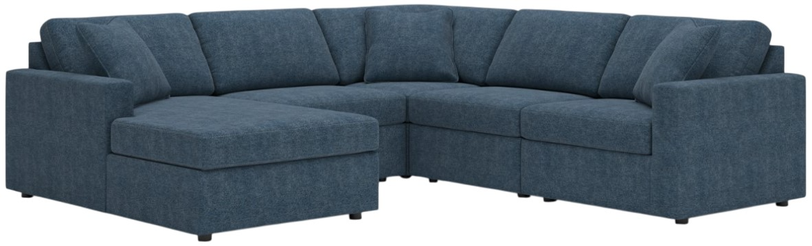 Includes 5 modular pieces: left-arm facing corner chaise, 2 armless chairs, wedge and right-arm facing corner chair